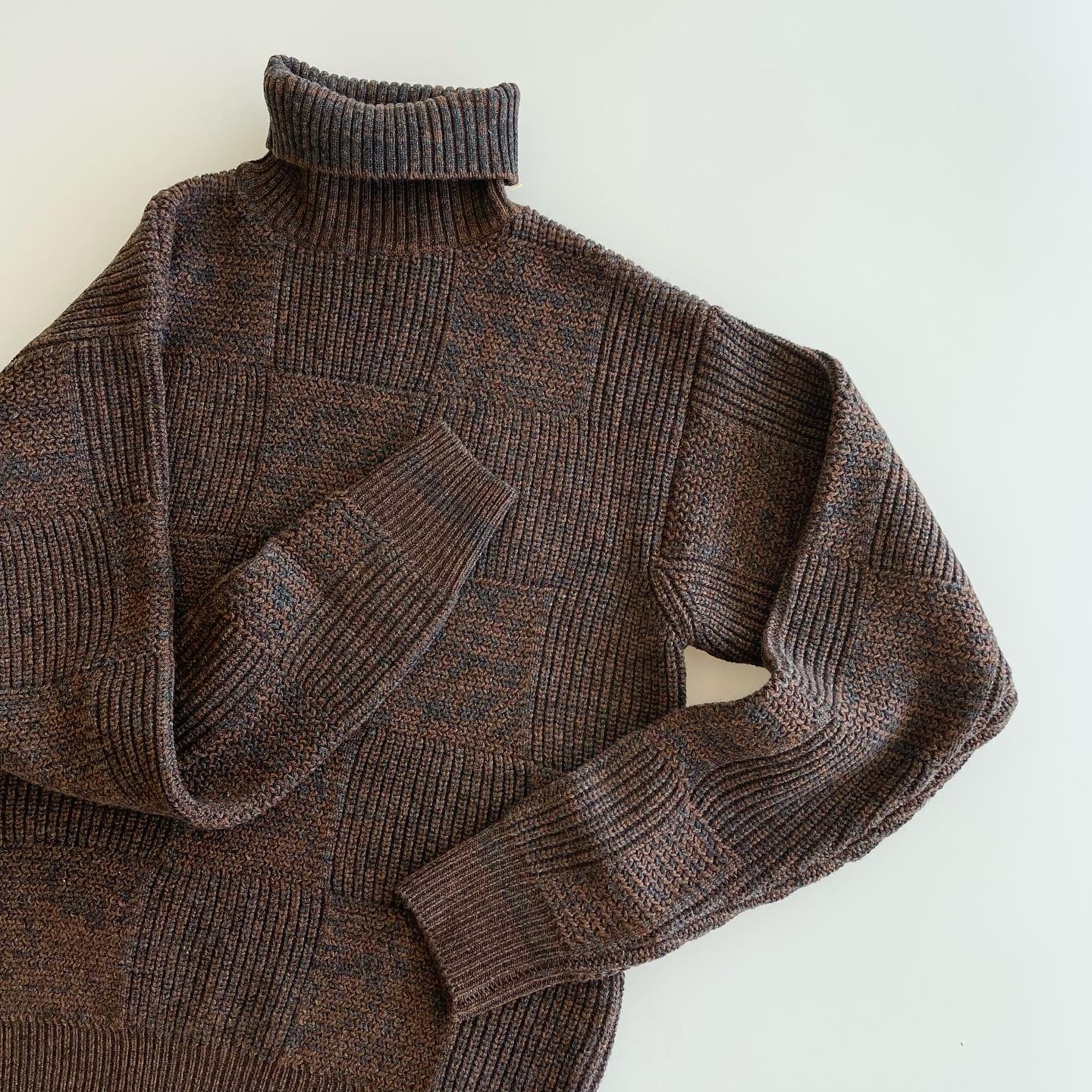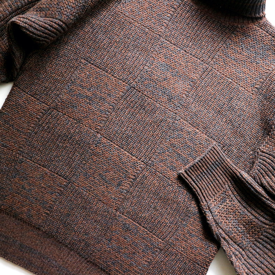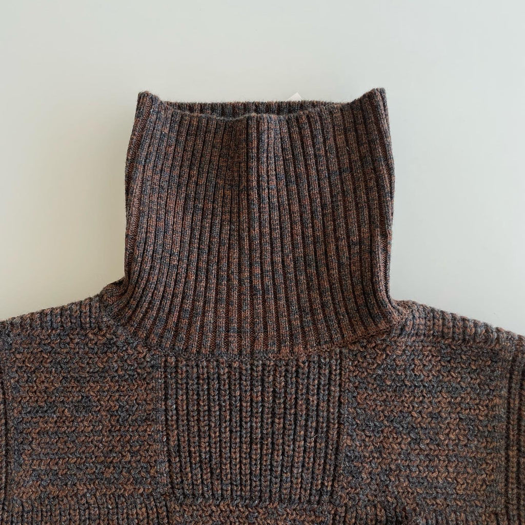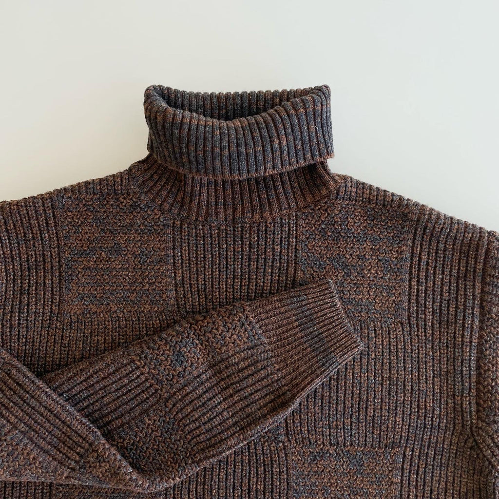 Merino Super Lamb Switch-Panel Turtleneck Sweater in Mix-Brown - Tempo