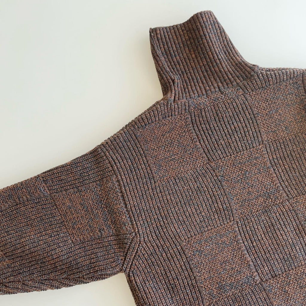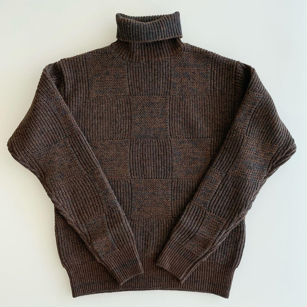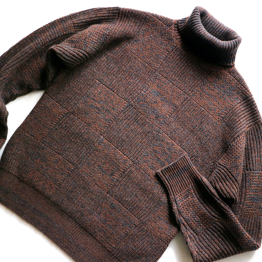 Ein spezieller Wollpullover mit Wechselstrickmuster und britischem Pullovermotiv der 80er Jahre, der ein stimmungsvolles Blockkaromuster aufweist. Das verwendete Material ist 100 % extrafeines Lamm aus der australischen Region „Geelong“, die als weltweit führender Produzent hochwertiger Lammwolle bekannt ist. Das Garn, das viel zarter und glatter als gewöhnliche Wollfasern ist, besteht aus hochwertigem Material, das Ihnen ein warmes und bequemes Tragegefühl ohne Kribbeln bietet und Ihnen die ursprüngliche Textur von Wollstrick mit hervorragender Wärme- und Feuchtigkeitsspeicherung bietet. Das Design basiert auf dem bestehenden britischen Pullover der 80er Jahre. Eine spezielle Kombination aus zwei unterschiedlichen Garnfarben, die bei Militärstrickwaren wie einseitigen Rippen und rippenförmigen Strickwaren zu sehen ist, wird in einer quadratischen Form nebeneinander gewechselt. Es ist eine sehr seltene und seltene Strickstruktur, und die Rippenstrickware hat eine hohe Wärmespeicherung, da sie Dicke erzeugt, und die texturreiche Färbung, die zwei Garnfarben mischt, ist ein Pullover, der eine einzigartige Atmosphäre und ein Gefühl von Luxus vermittelt. Die Silhouette hat eine normale Passform, die es Ihnen ermöglicht, sich zu entspannen und sie mit viel Weite und Schulterbreite zu tragen. Das Nähen erfolgt durch „Linking“, eine hochwertige Strickherstellungsmethode, und es wird mit einer Methode hergestellt, die Zeit und Mühe erfordert, um jedes Stück von wertvollen einheimischen Handwerkern fertigzustellen, von denen es nur noch wenige gibt, und die die Textur des Pullovers weiter verbessert. Ich bin. Dieser Artikel ist ein sehr seltener in Japan hergestellter Linking-Pullover, der derzeit mit einer Inlandsproduktionsrate von nur „1,9 %“ nicht in Massenproduktion hergestellt werden kann, da die meisten Strickprodukte im Ausland hergestellt werden.