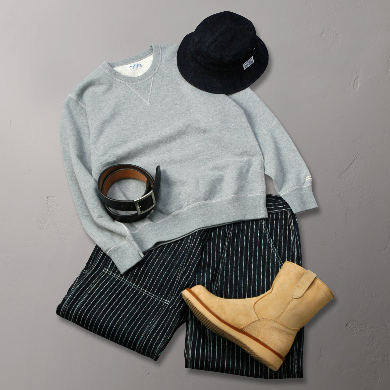 Ein schlichtes und einfaches Sweatshirt mit Rundhalsausschnitt. Beim Nähen wurden Vintage-Details wie der V-förmige Zwickel um den Hals und flache Nähte verwendet, um den Tragekomfort zu gewährleisten.