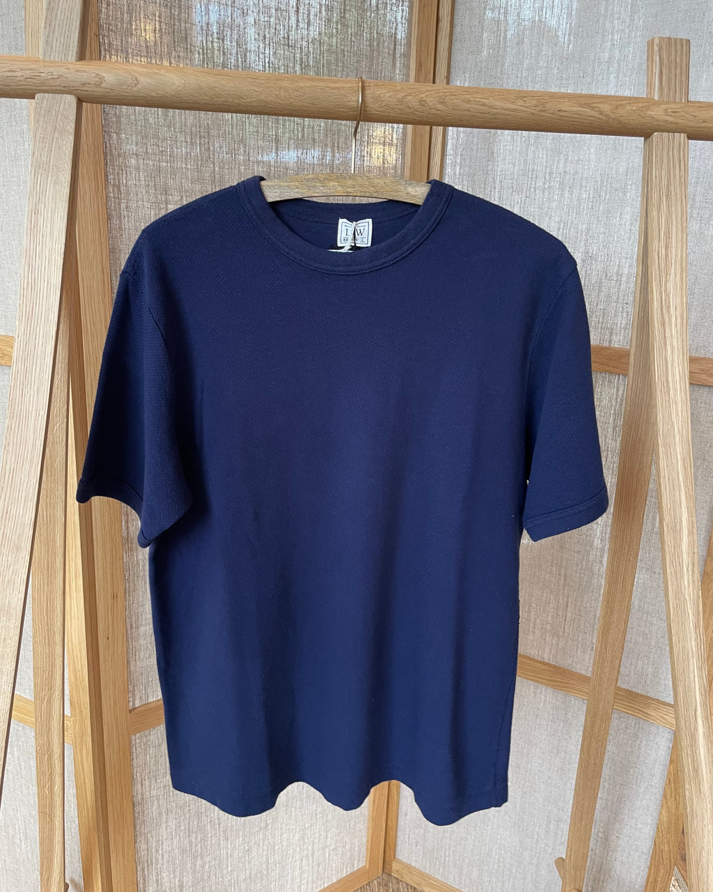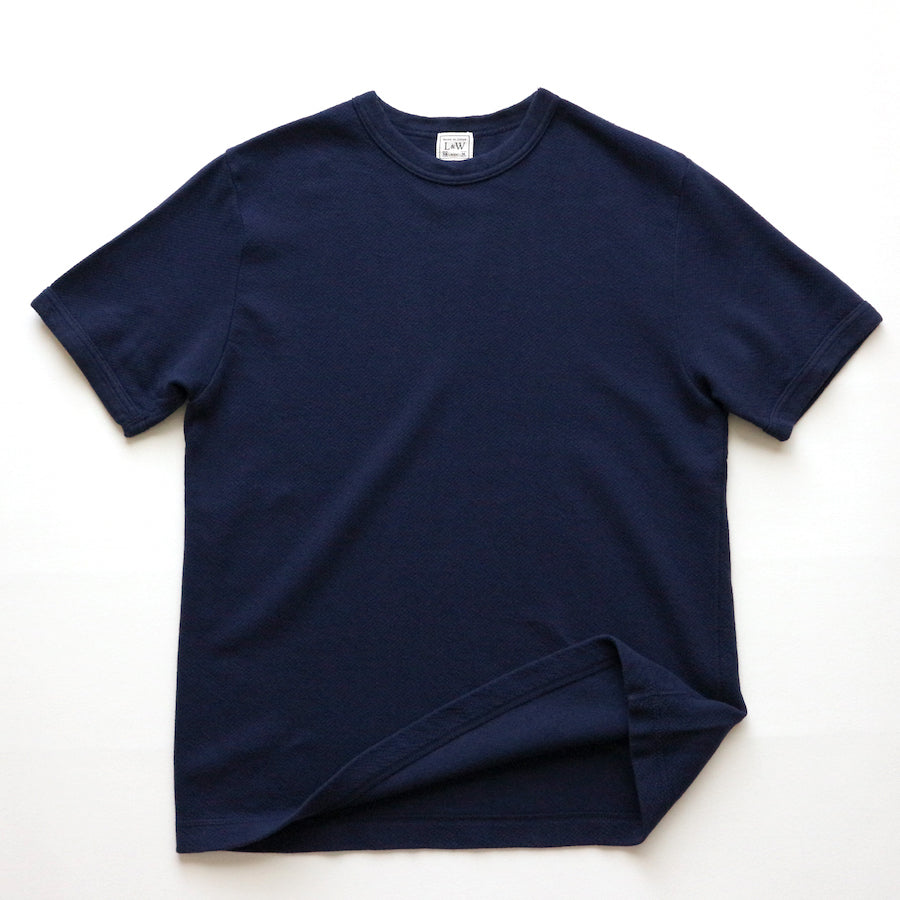 Ein kurzärmeliges Militär-T-Shirt aus einem einzigartigen, originellen Doubleface-Strick in Twill-Optik. Das Material ist ein Doubleface-Strick, was wörtlich „Twill“ bedeutet, aber das gleiche „Twill“-Muster (diagonale Linie), das auch bei Stoffen wie Denim verwendet wird, ist im Außenmaterial zu finden. Obwohl es auf der Vorderseite ein dreidimensionales Muster aufweist, hat das Futter eine Strickstruktur, die sehr glatt ist und sich wie ein glatter Strick anfühlt. Es wird das Originalmaterial verwendet, das es stark und widerstandsfähig macht, und es hat eine Textur, die beim Tragen zunimmt, und sorgt für stressfreien Komfort.