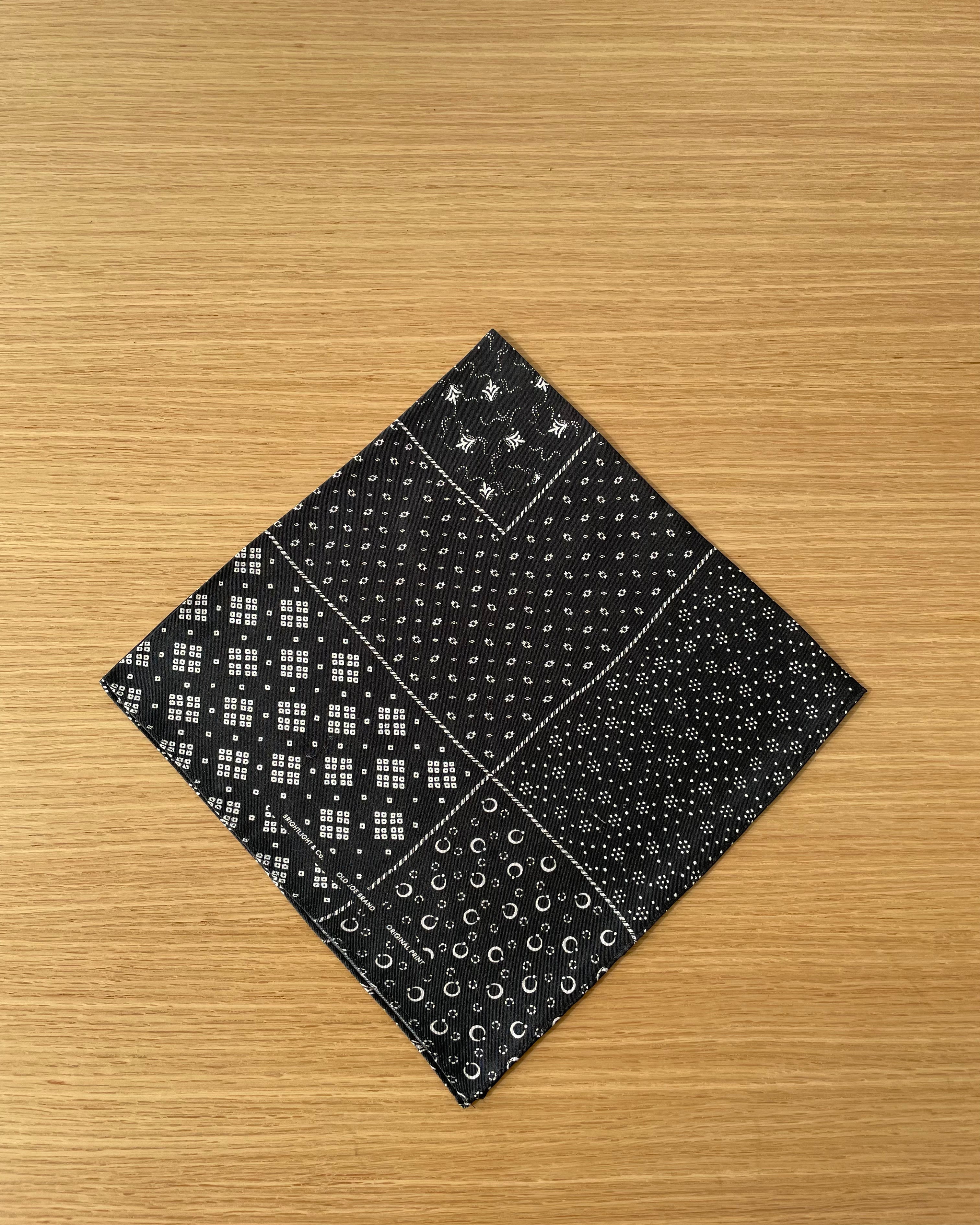 Old Joe – Klassisches Produkt, Originaltextil, hochwertiges Bandana. Sie können es anstelle eines Kopftuchs in die Tasche stecken oder wie ein Bandana um den Hals wickeln. Das indigoblaue Kalikomuster wurde nach dem Design guter alter amerikanischer Archivstücke rekonstruiert und ist absichtlich in Schwarz und Eukalyptusgrün verblasst. In dieser Saison wird es wieder aus 100 % Seide hergestellt.