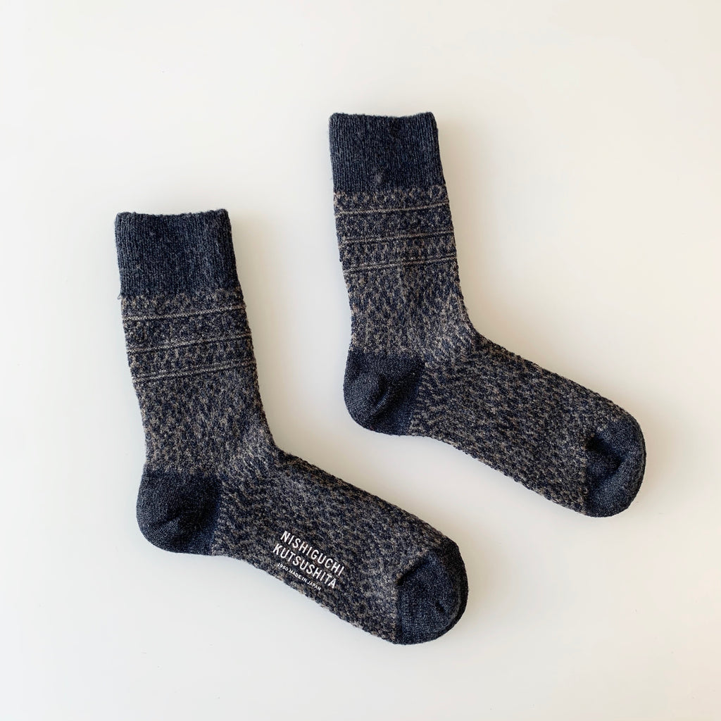Nishiguchi Kutsushita - Wool Jacquard Socks in Navy - Tempo