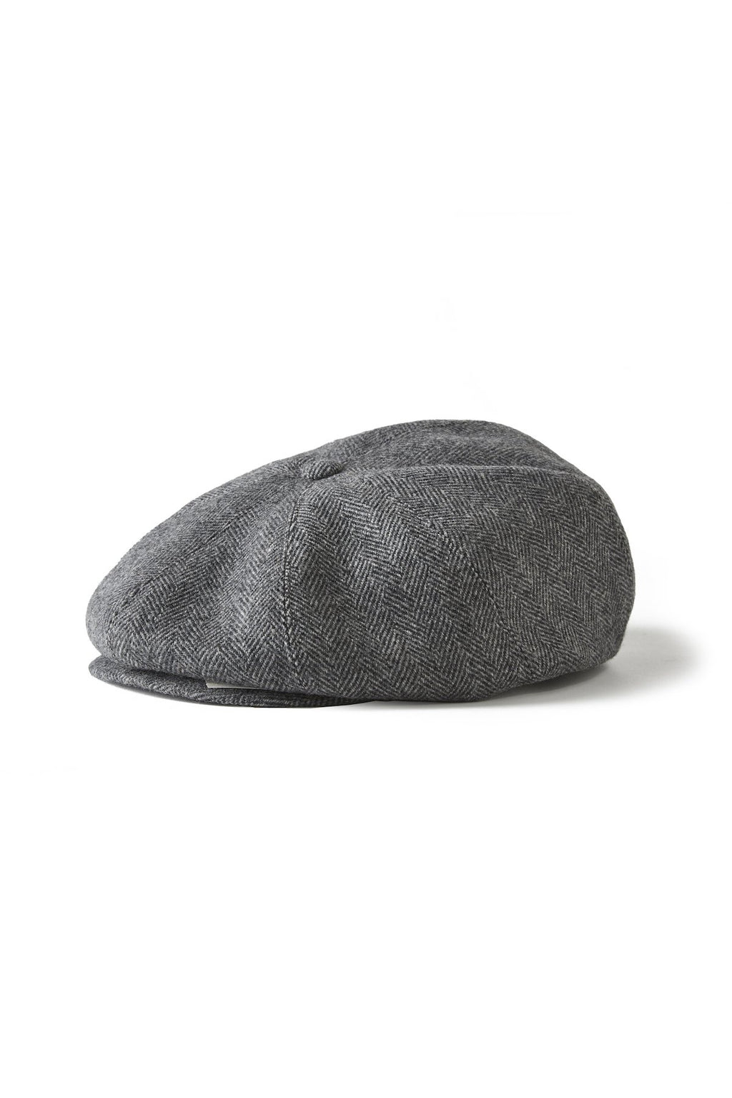 A collection piece that represents us. A peaked casquette with a contemporary fit while having classic details as a base. Produced from the image source of the 1910s and 1930s, this piece is an original fit that has been completed by repeatedly modifying the silhouette construction. It is designed to look beautiful without being untidy, such as the forward tilt angle when worn, the size of the brim, the amount of cloth accumulated when flushed to the front, and the bulge on the side. This fabric will be a cashmere-blended old joe original tweed produced with an original design. The textile is inspired by a window pen made of twisted yarn, a herringbone with a zigzag pattern border, and a fabric swatch excavated from a very old tailor. Woven with a mixture of worsted and cashmere, the tweed has an elegant feel and a high-quality surface that can be seen from a distance.