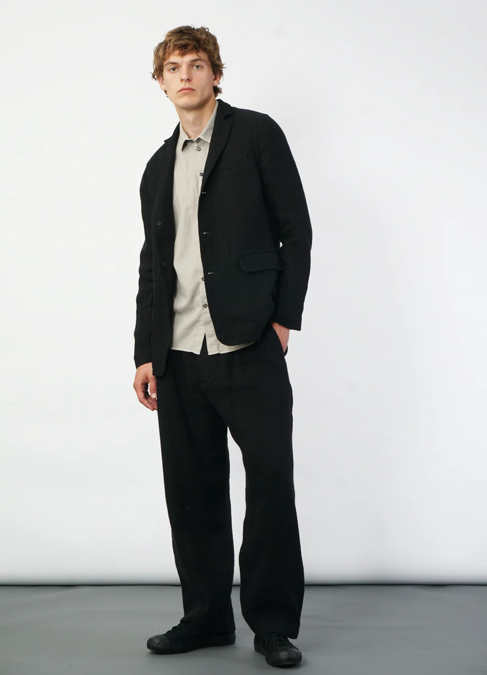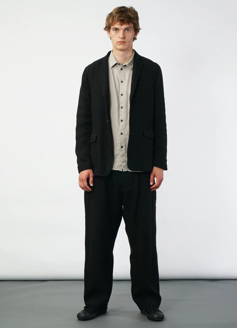 HANSEN - Charlie Easy Three Button Blazer in Linen Cotton Black Gauze - Tempo