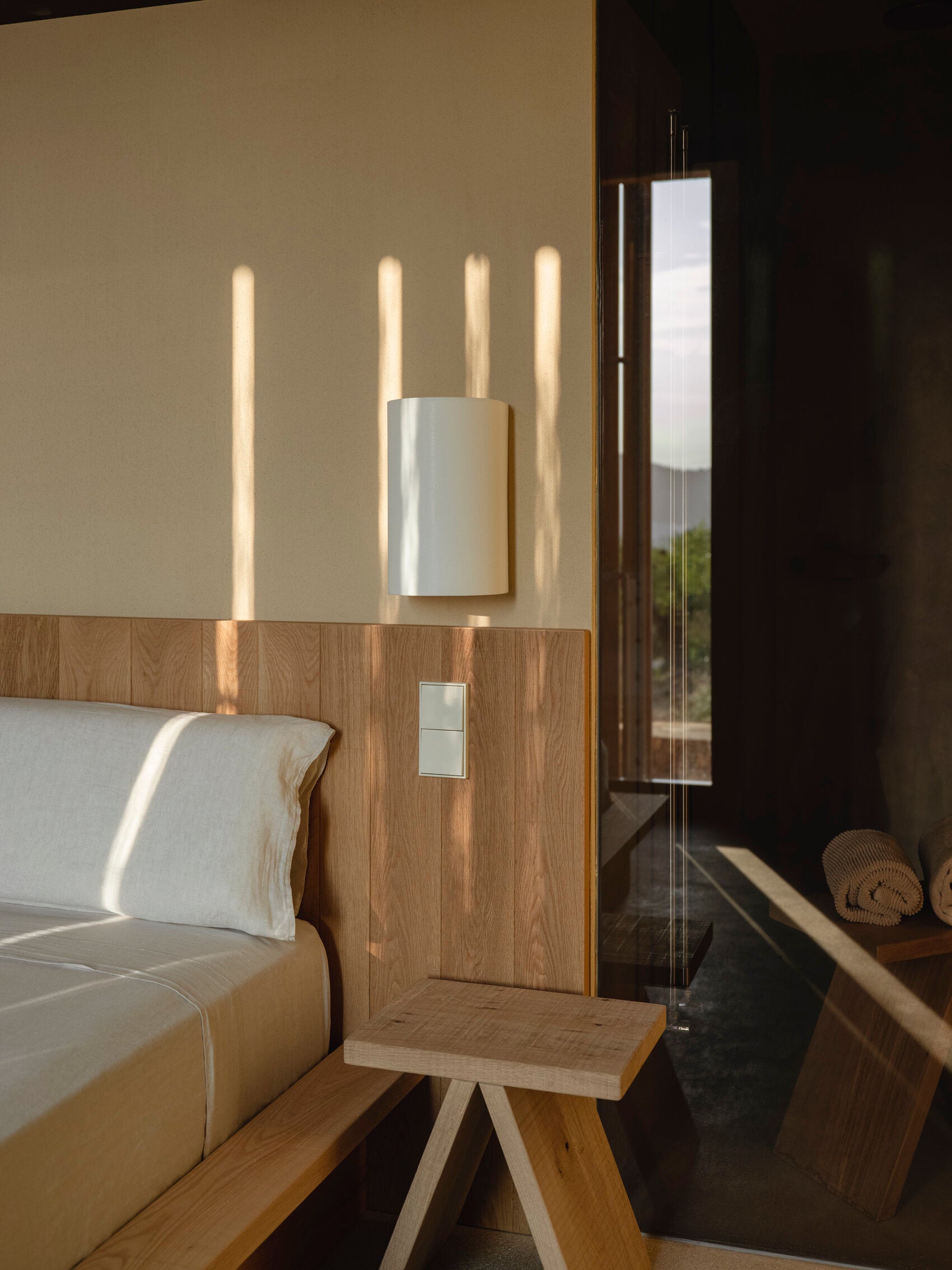 A lightweight shade of white linen conceals a chrome-plated structure that holds the light source, with clean lines than conceal all and show nothing. These few elements, deftly combined, create an exciting and accompanying effect, in an advocacy of the simple, the useful and the everyday.