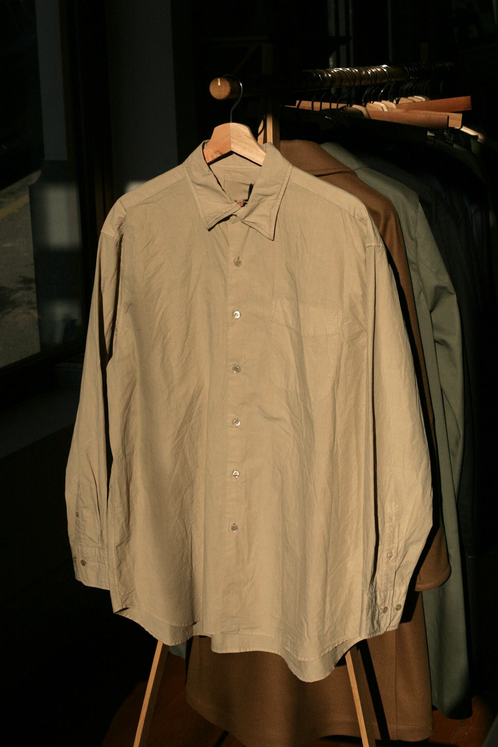 YOKO SAKAMOTO - Max High-Count Typewriter Collar Shirt | Beige - Tempo