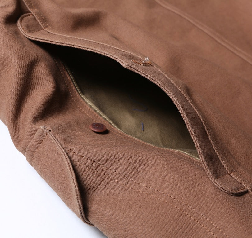 Grandes poches avec capacité de stockage, motifs autour des emmanchures avec élan, etc. Reproduisant les détails du temps et du travail qui nécessitent une technologie d'usine différente du travail et de l'armée.