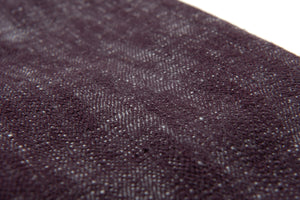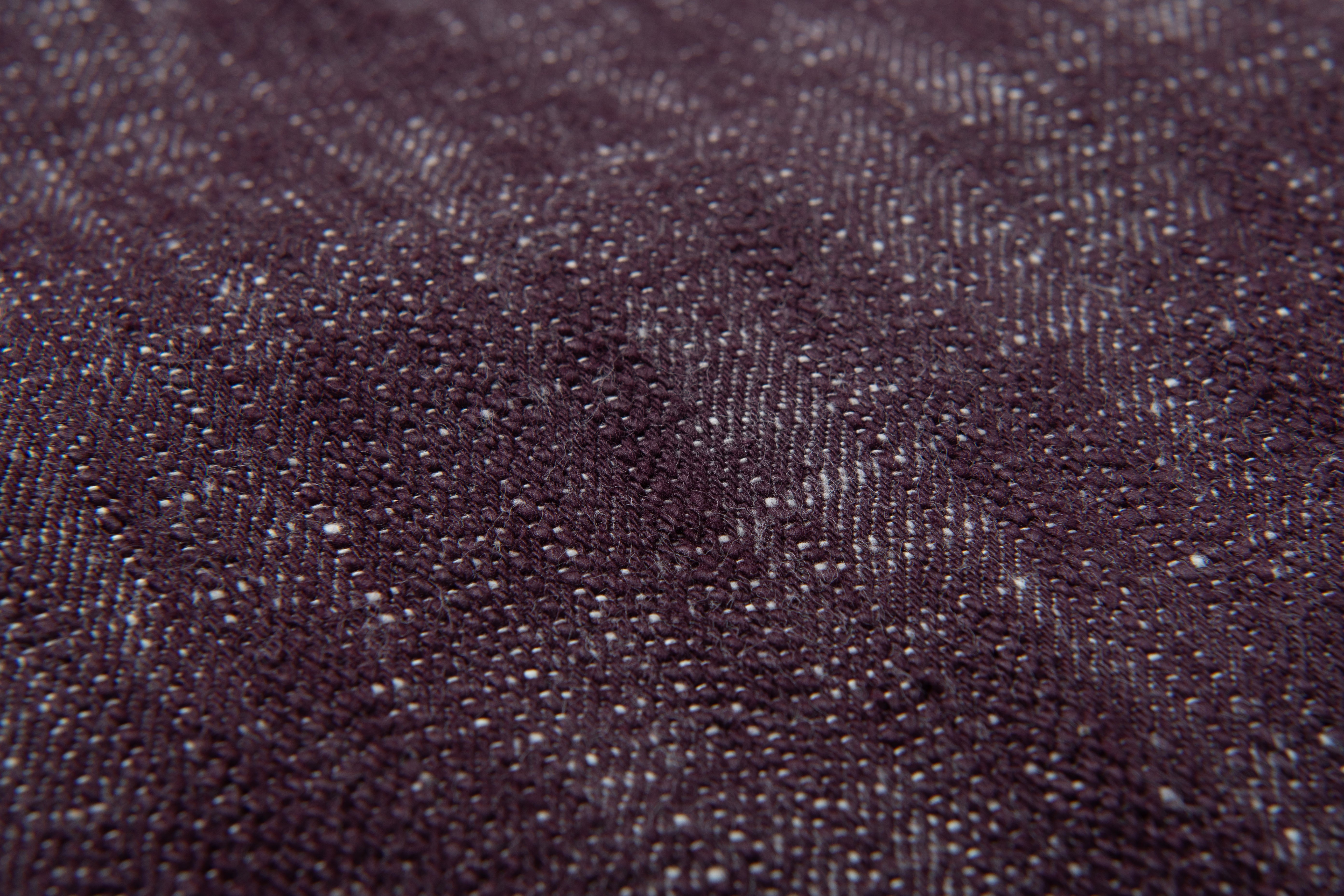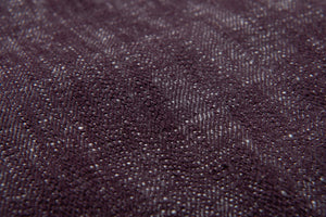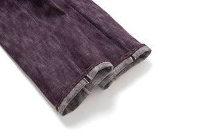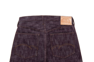 This original denim is made with the traditional Japanese color "FUTA-AI." The warp yarns are dyed with natural indigo and madder dye layers to create a deep purple color. The natural unevenness unique to natural dyes enhances the distinctive texture. Both the warp and weft yarns are made of 6-count uneven slub yarn, creating a heavy finish. This denim dyed with "FUTA-AI" has a unique presence that combines calm, elegance, and strength.