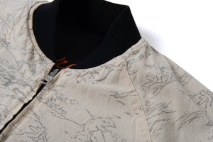 STUDIO D'ARTISAN - Manga Printed Kasuri Cotton-Rayon Souvenir Jacket - Black x Ivory Reversible - Tempo