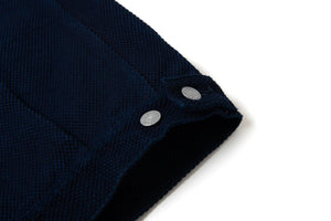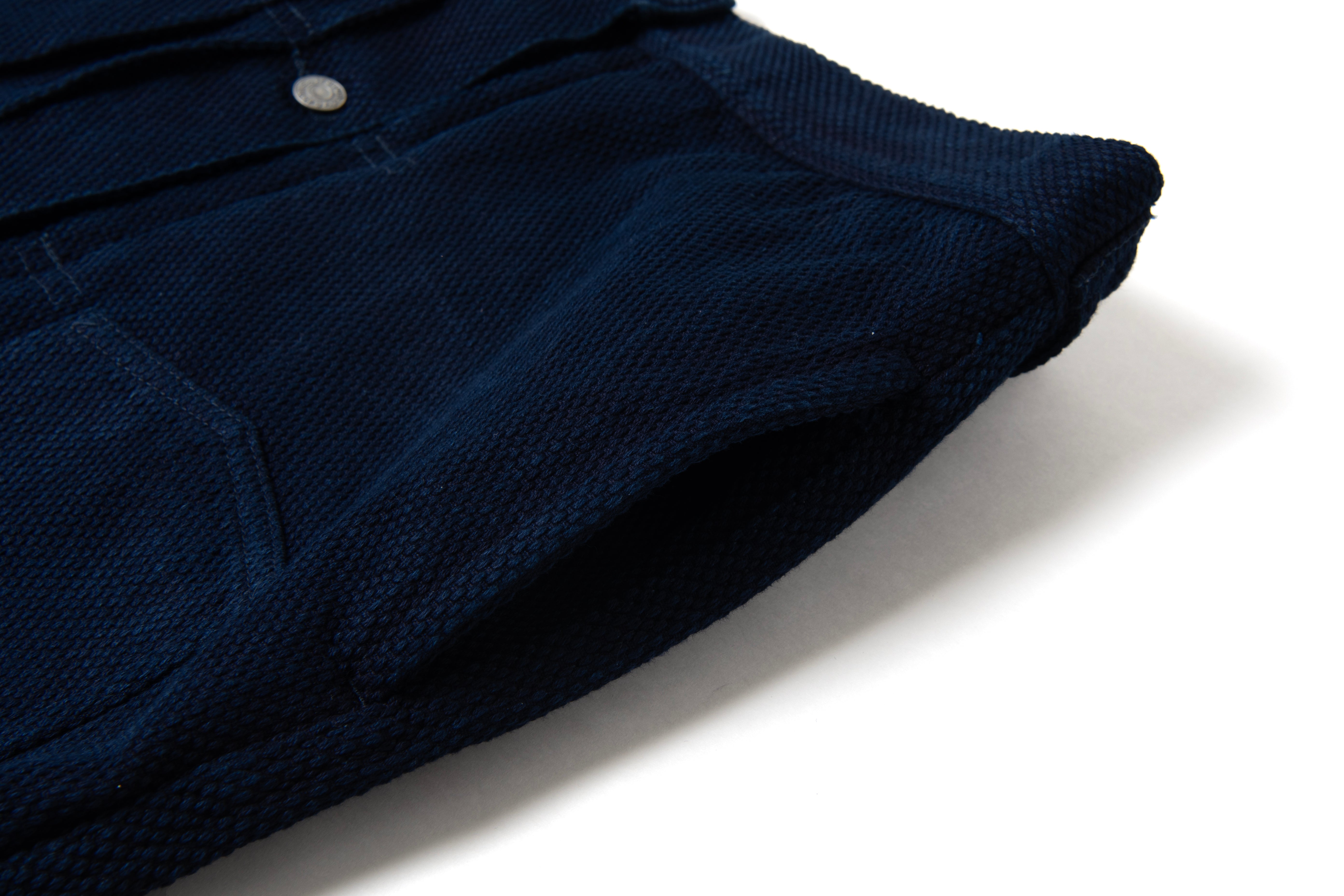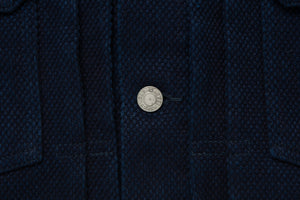 This is a 2nd-type denim jacket featuring side pockets.This piece is crafted from our original 14.0oz selvage sashiko fabric, woven on a power shuttle loom. The fabric’s surface is dyed vertically and horizontally with the highest concentration of indigo yarn. The weaving density is maximized to replicate sashiko's distinctive unevenness and thick texture faithfully. This design has been reimagined to blend with vintage American workwear while complementing modern lifestyles seamlessly.